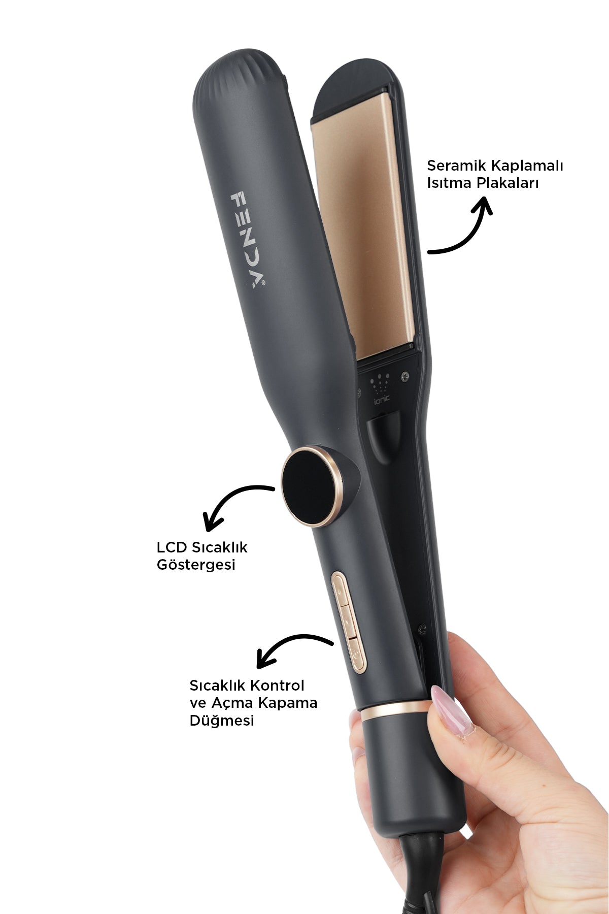 - LCD Isı Göstergesi & Dokunmatik Kontrol: Mevcut sıcaklığı anlık olarak takip edebilir ve hassas dokunmatik panel üzerinden saç tipinize en uygun ayarı seçebilirsiniz.